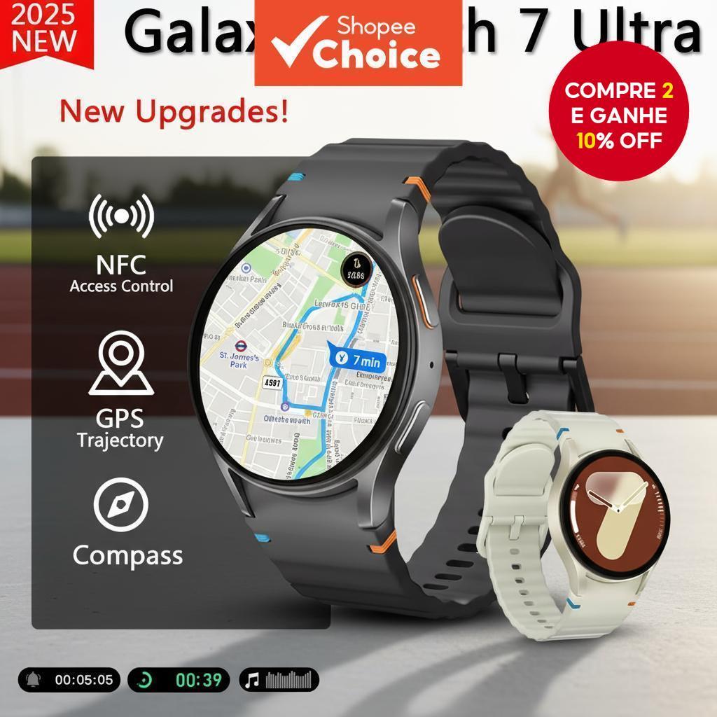 2025 Galaxy Smartwatch 7 Ultra GPS Relógio Inteligente para Homens e Mulheres Esportivo Fitness Bússola Monitor