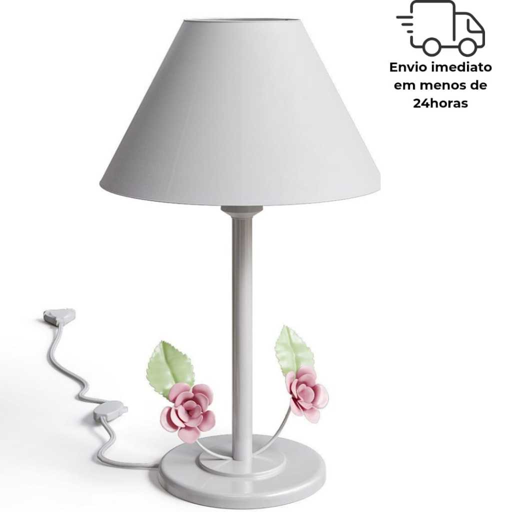 Abajur Em Ferro Com Flor Quarto Criança Luminária Decoração Mesa Quarto Sala