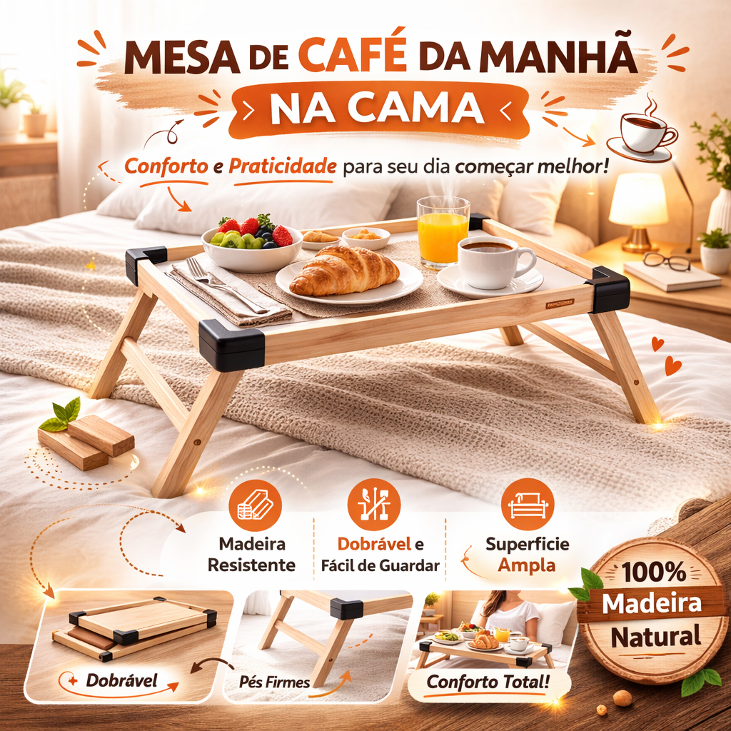 Receba Bandeja Mesa De Cafe Com Pezinhos Para Café Da Manhã na Cama e Sofá no seu celular!