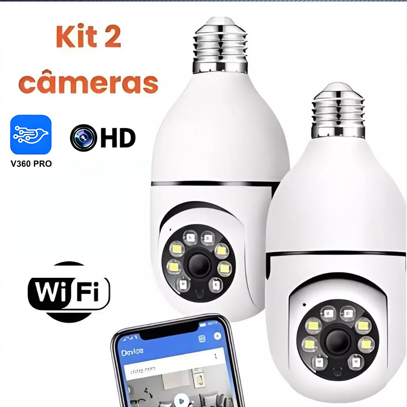 Kit 2 Câmeras segurança wifi ip sem fio 360 encaixe lampada Infravermelho sem fio ptz full HD G4