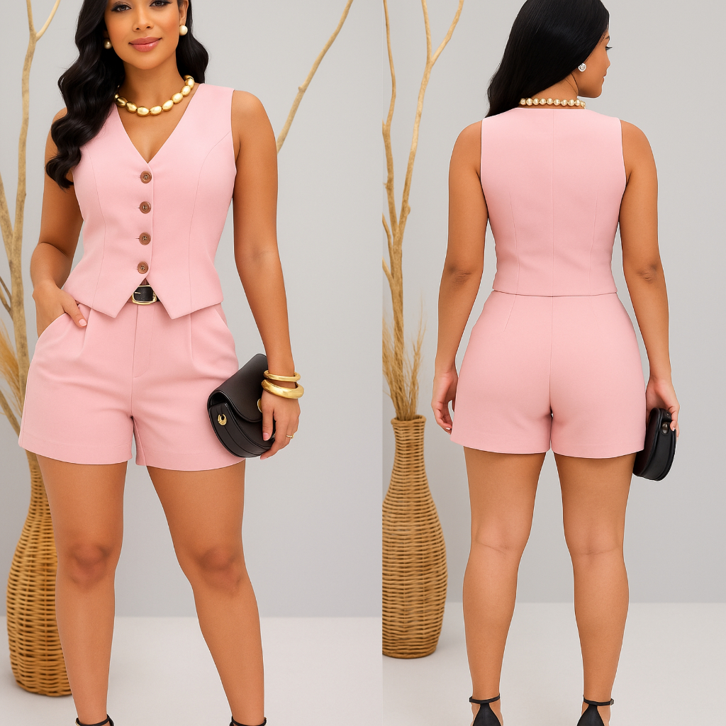 Conjunto Feminino Alfaiataria Luxo - Short e colete Elegante tendência verão 2026