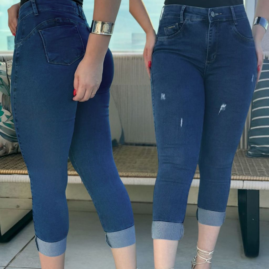 Calça Jeans Feminina Capri Cintura Alta Com Lycra Elastano Confortável Estilosa Empina Bumbum Brasil