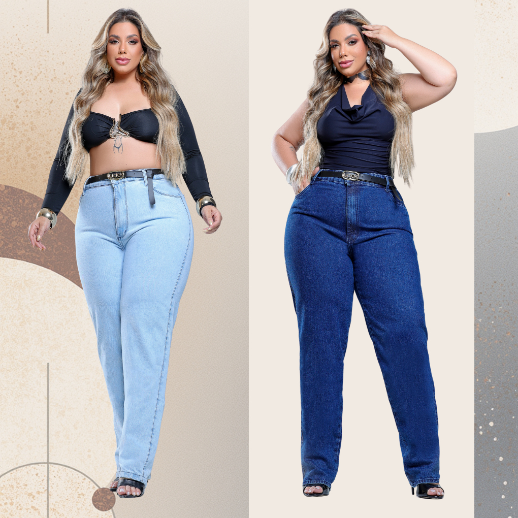 Calça Mom Jeans Plus Size 100% Algodão Cintura Alta Premium Lipo Não Desbota Slouchy