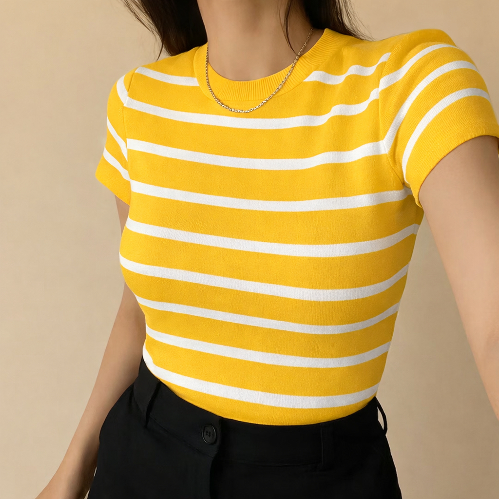 T-Shirt Listrada Manguinha – Casual e Versátil