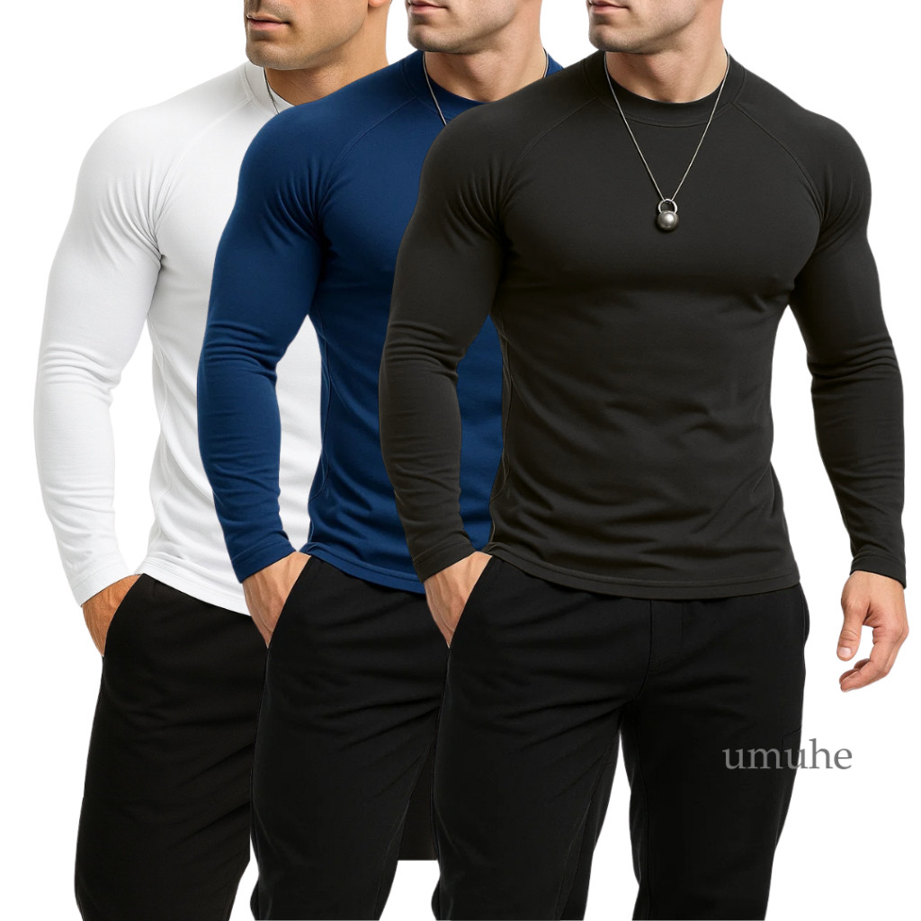 Camiseta de Compressão Masculina Manga Longa Térmica UV Academia Rash Guard Jiujitsu Apertada Justa Treino