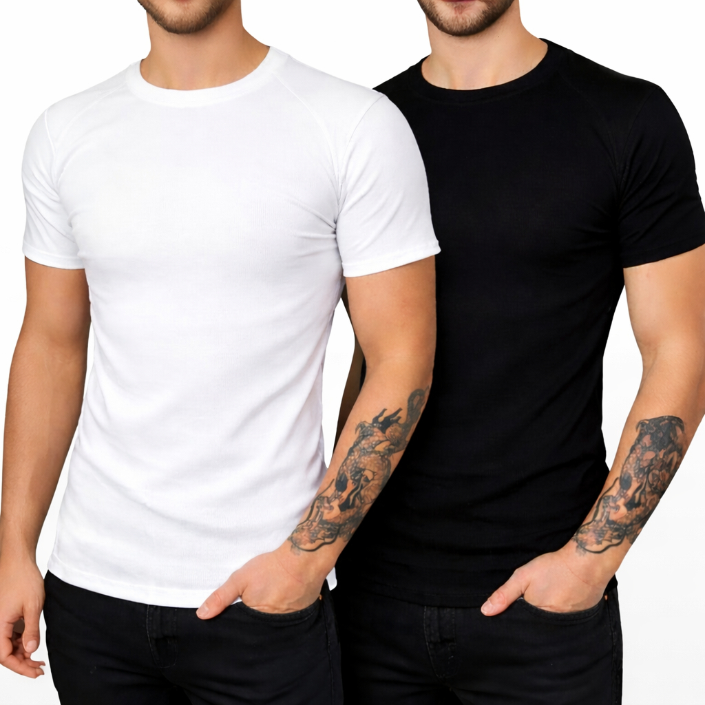 KIT 2: Camiseta Canelada Masculina Ribana Slim Basica Justa Ao Corpo Estilo Americana Rapper
