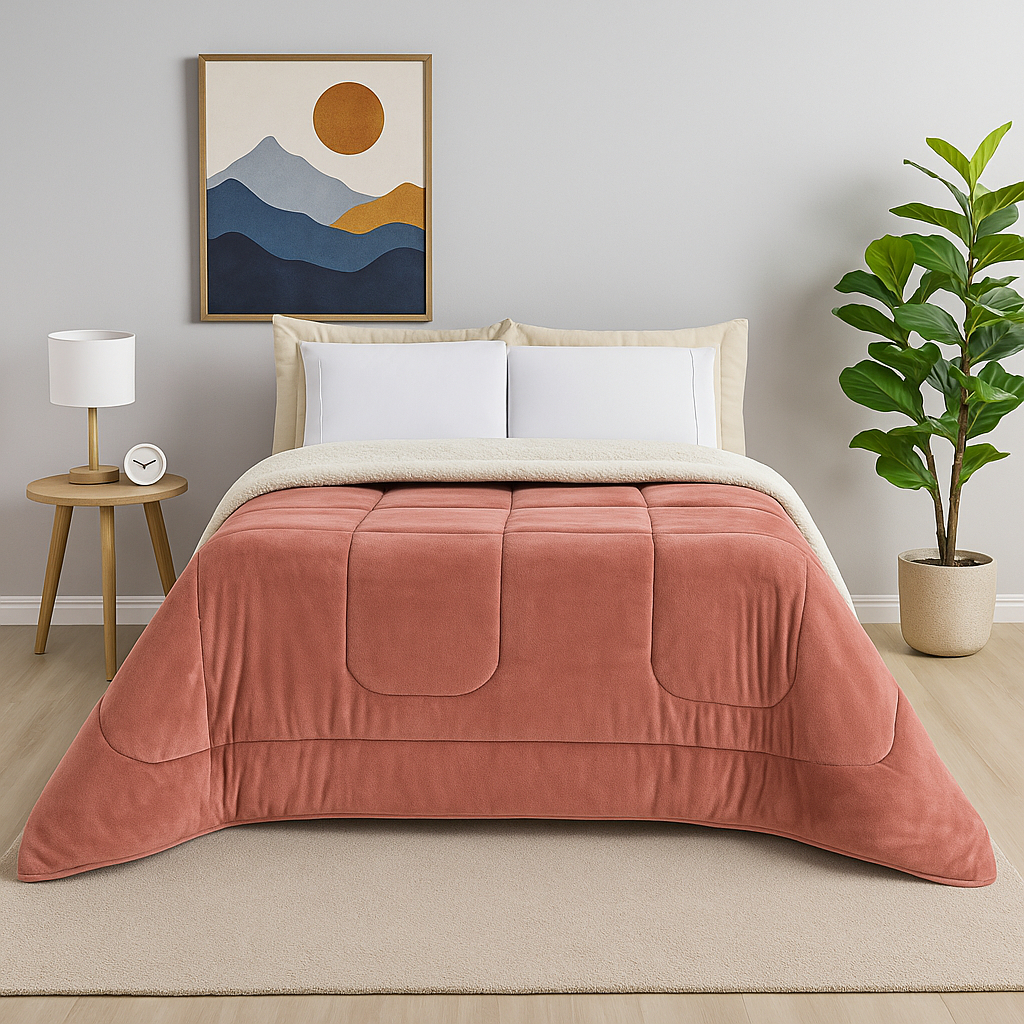 Coberdrom Edredon Casal Queen Dupla Face Sherpa Pele de Carneiro Peludo Promoção