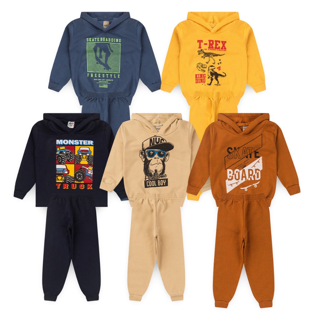 Kit 2 Conjuntos Moletom Capuz Masculino Infantil Menino roupa inverno frio com touca tamanho 1 2 3 4 6 8 63% OFF