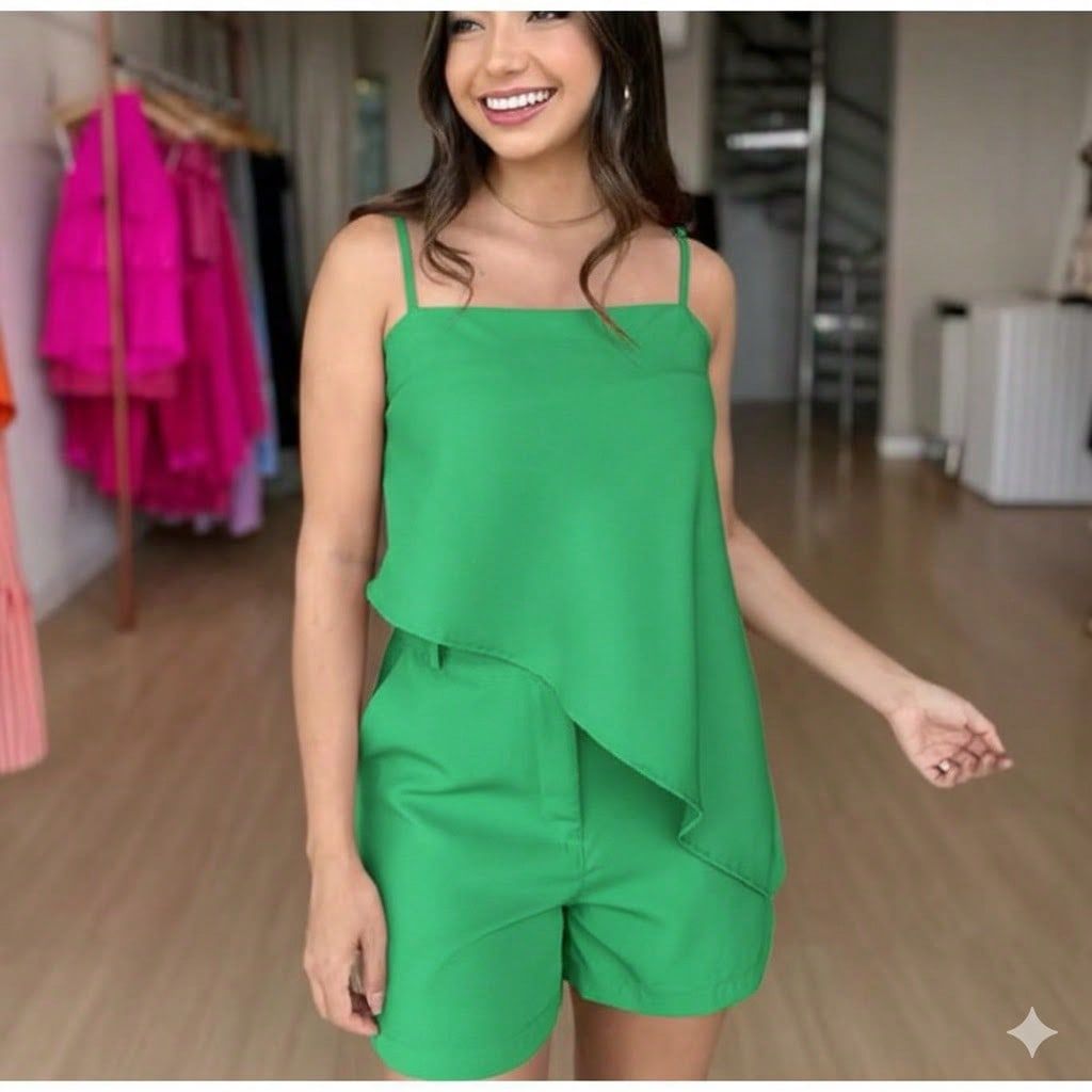 Conjunto Feminino Duas Peças| Cropped e Shorts | Tecido Alfaiataria | Juliana