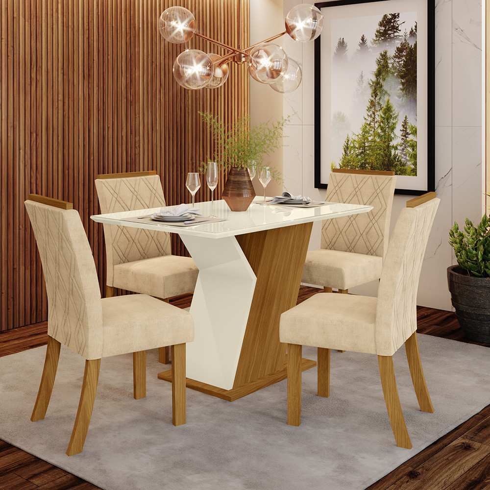 Conjunto Sala de Jantar Tampo MDF com Vidro Canto Arredondado 120 Cm 4 Cadeiras Lupita Casa 812