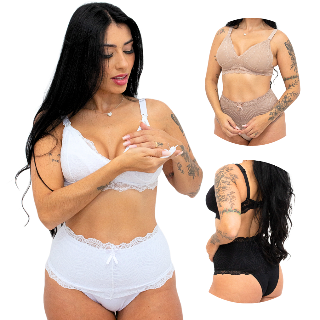 FAQ: Conjunto de Amamentação Reforçado Sutiã de Amamentar e Calcinha Pós Parto modeladora cós alto