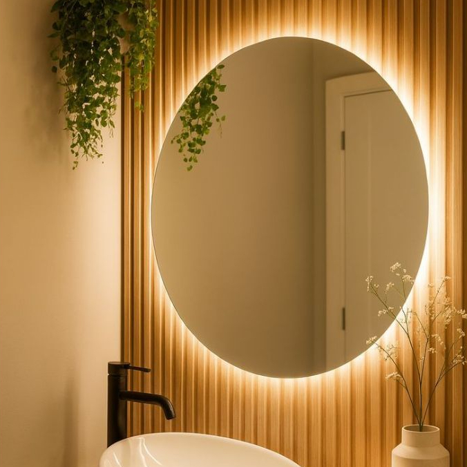 Receba Espelho Redondo com LED – Decorativo Moderno Iluminado Vidro Lapidado Vários Tamanhos no seu celular!