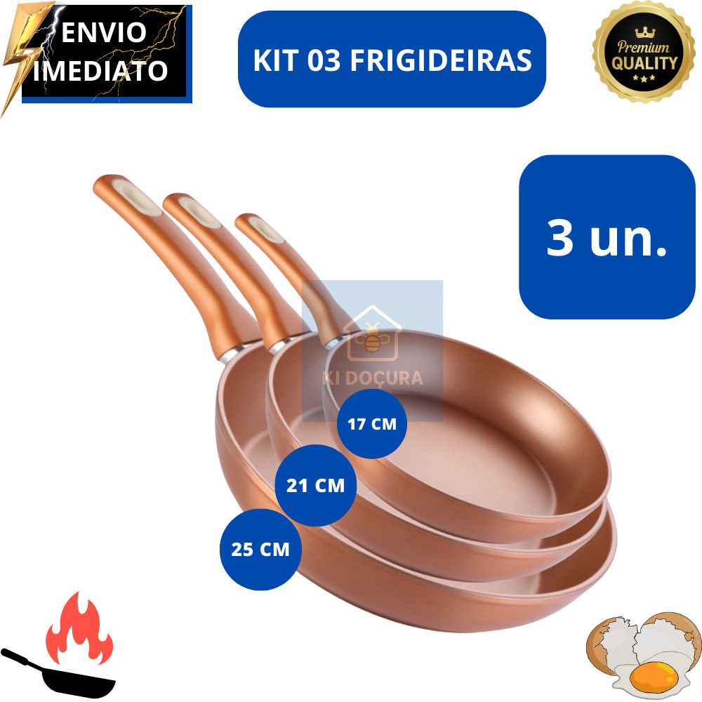 Jogo 3 Frigideiras Antiaderente Grande Cerâmica Não Gruda, Dieta, Não Vai Óleo Utensilio Domestico Qualidade Premium