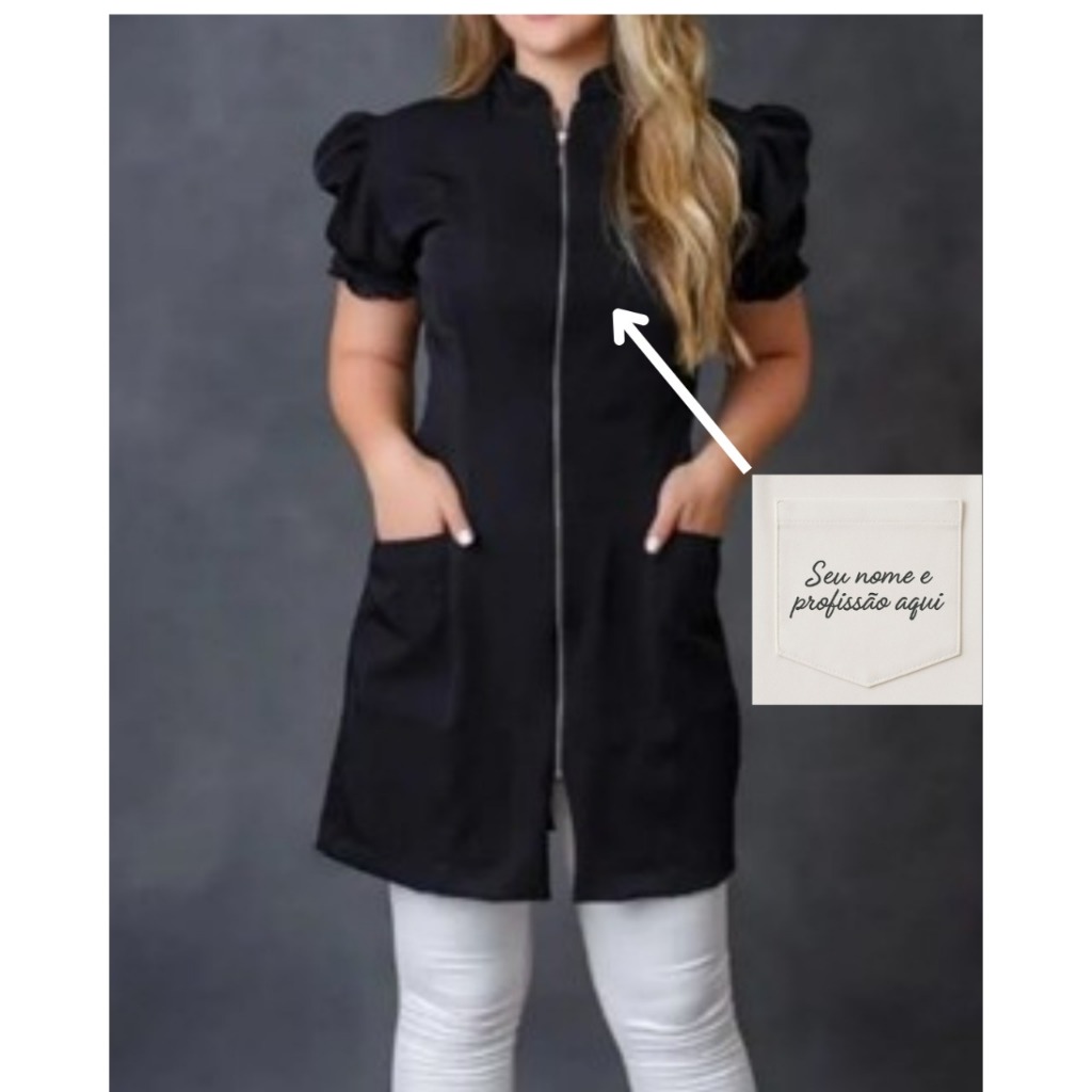 FAQ: Jaleco Manga Curta Princesa + BORDADO NOME E PROFISSÃO INCLUSO