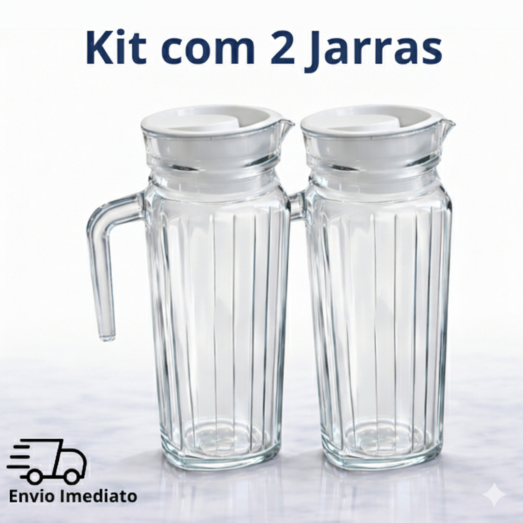 Kit 2 Jarras de Vidro Suiça 1L com Tampa Água Suco Vidro Resistente