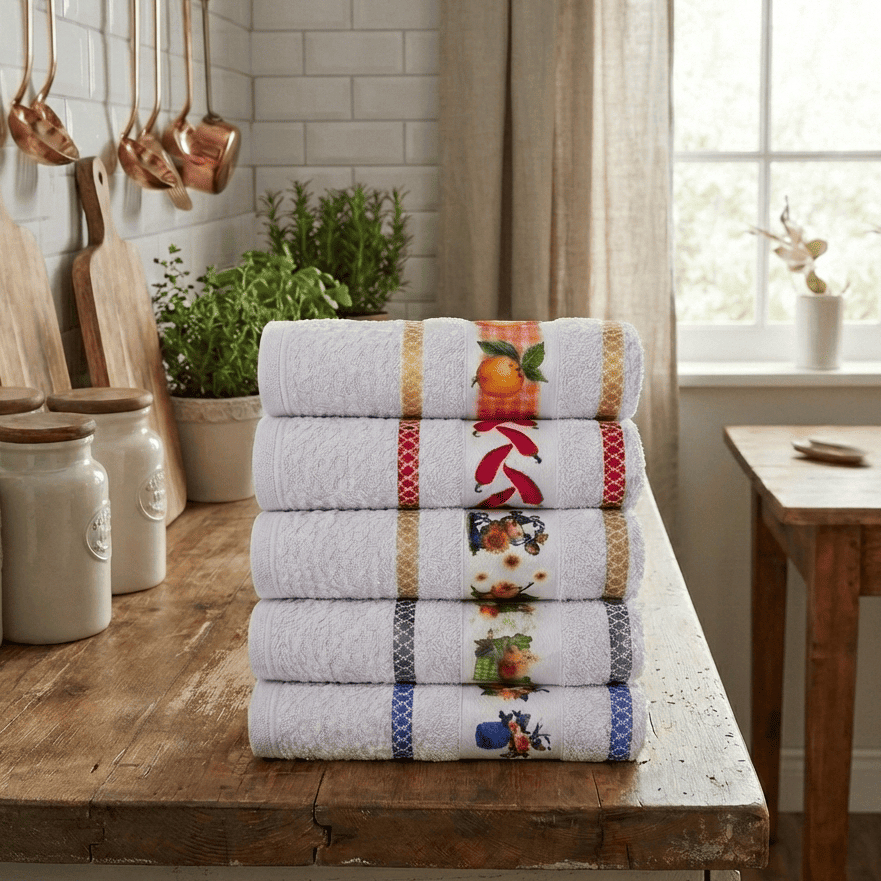 Kit 10 ou 5 Panos de Prato Jacquart Transfer/Copa Felpudos Pano de Prato Estampado 100% Algodão Copa Atoalhado