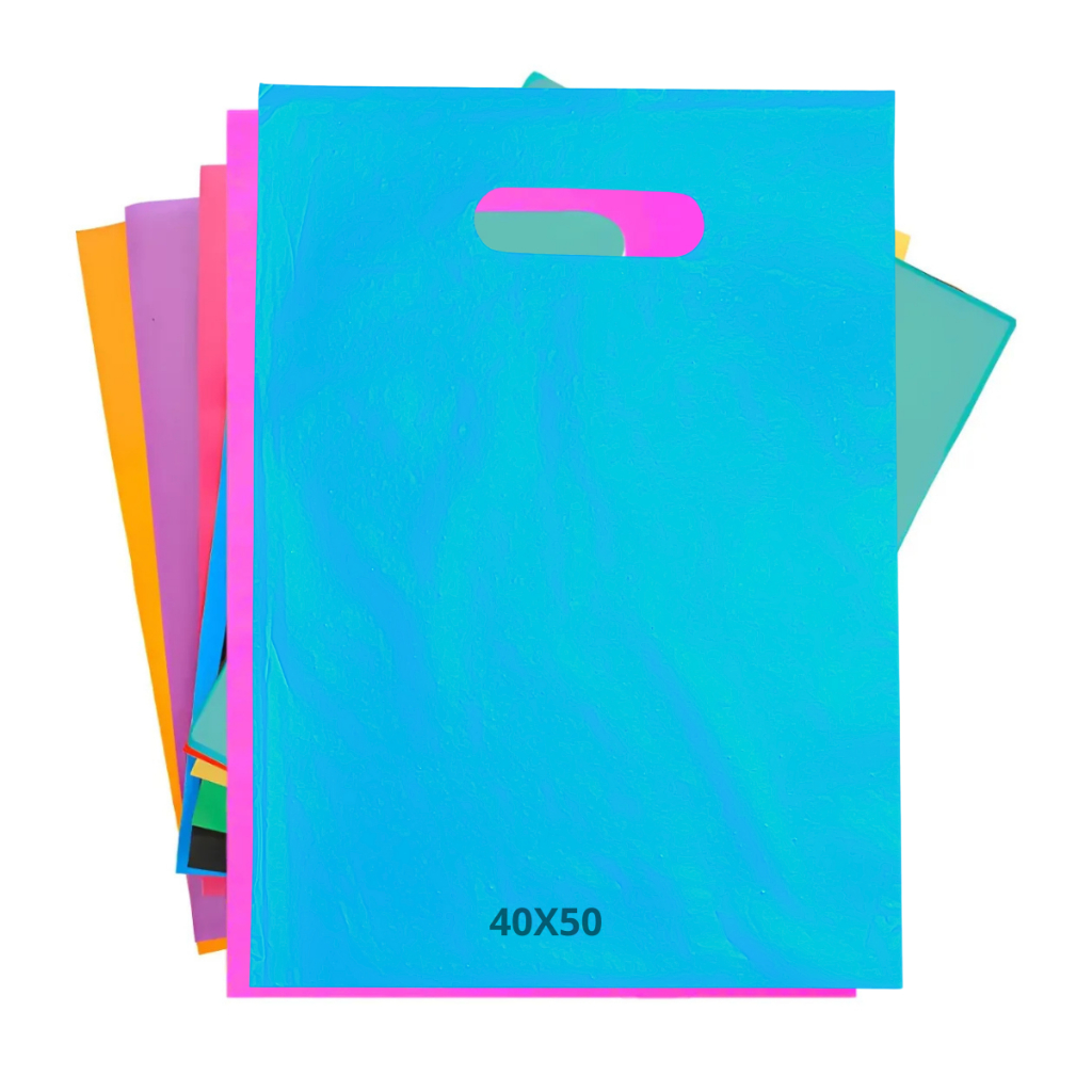 Kit 100 Un Sacola Plástica Lisa 40x50 Alça Vazada Boca de Palhaço