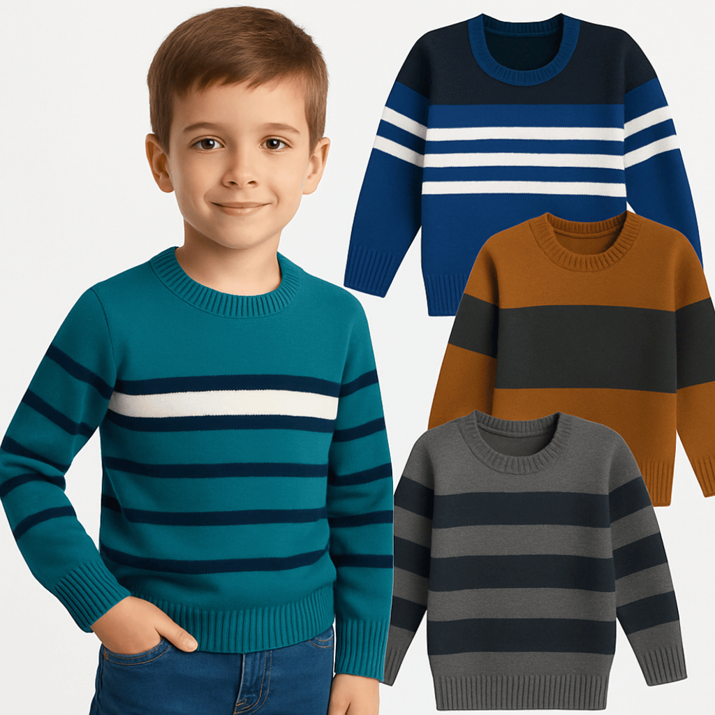 Receba Kit 3, 2, ou 1unid Suéter Infantil Tricô Menino masculino Tam 1 ao 8 Cores Variadas Quentinho Conf no seu celular!