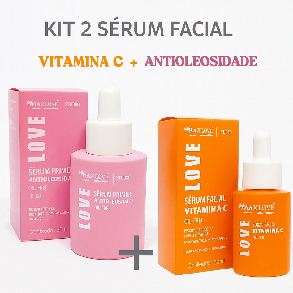Kit C/2 Sérum Facial Vitamina C + Antioleosidade MAX LOVE 30ml