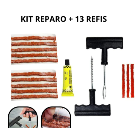 Kit Reparo Pneu sem Camara para Carro e Moto + 13 Refil Selante Macarrão Remendo