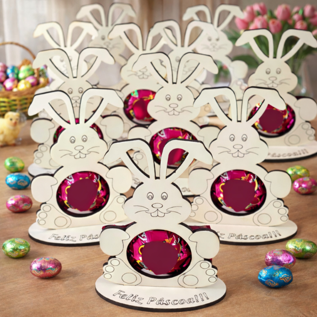Receba Kit com 30 Porta Bombom de Coelho para Páscoa em MDF no seu celular!