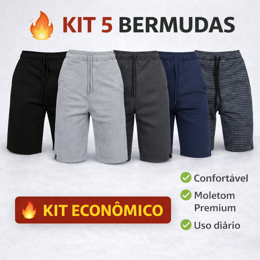 Kits Cinco Bermudas de Moletom Premium