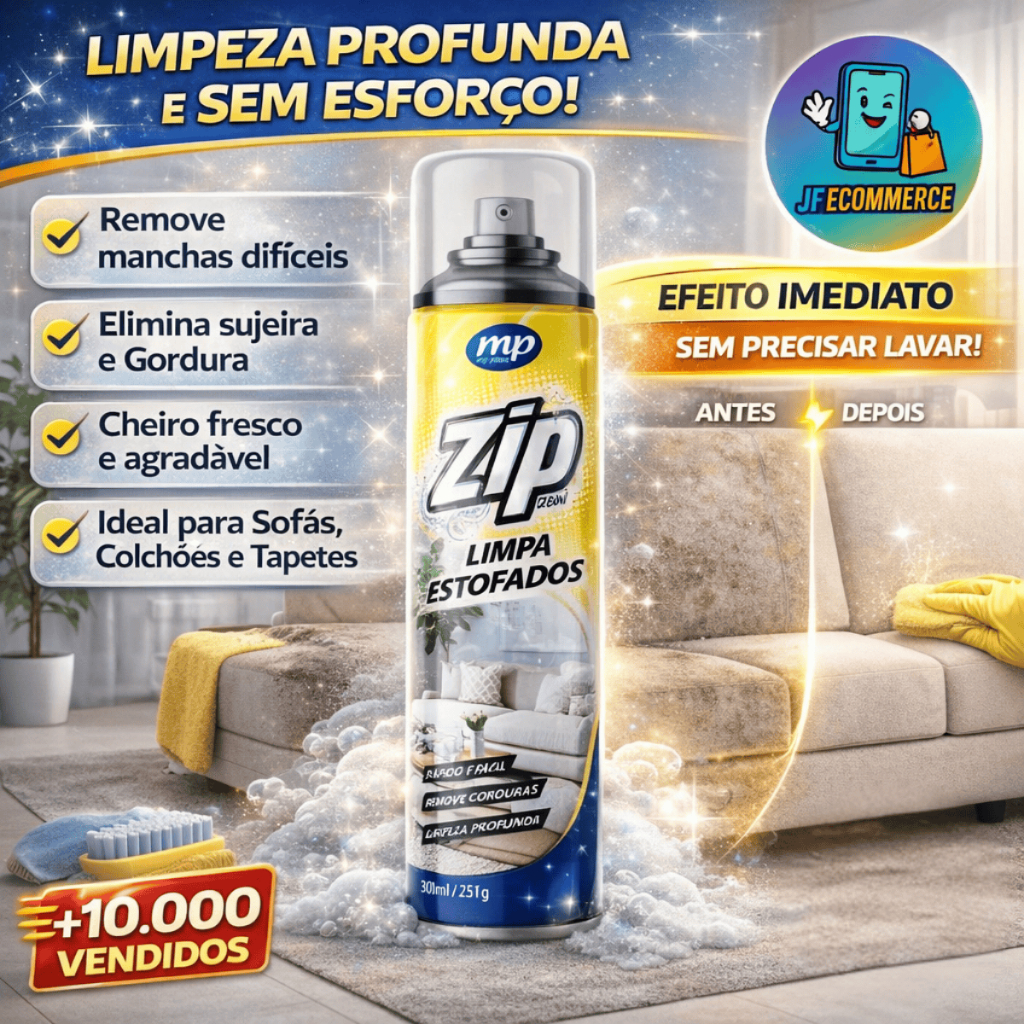 Receba Limpa Estofados Espuma Mágica Limpa a Seco Zip Clean Spray 300ml - Limpeza Poderosa Tira Manchas no seu celular!