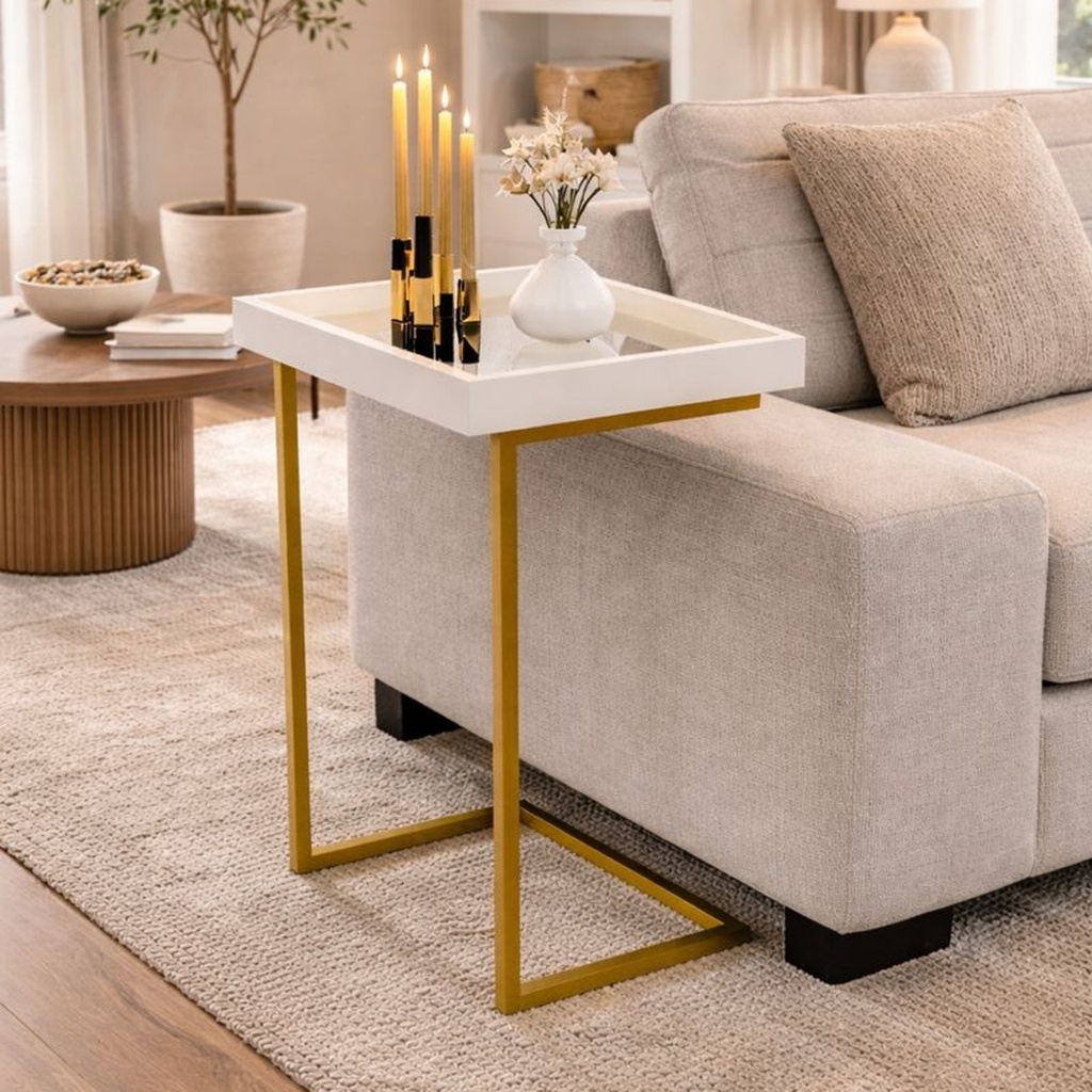 Mesa Lateral Espelhada Moderna com Pés de Ferro – Apoio para Sala e Sofá, Elegante e Resistente