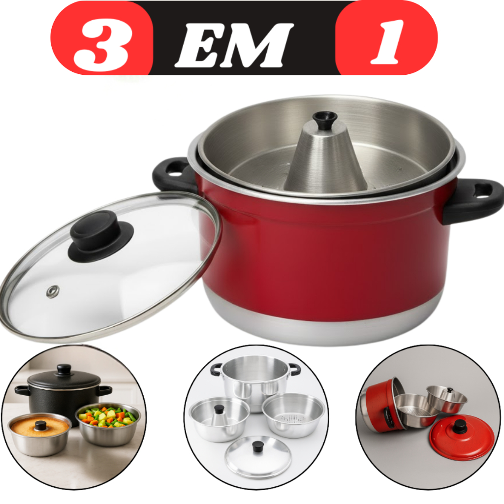 Por que confiar nos nossos Achados de Panela Alumínio 3 Em 1 Tampa de Vidro Multiuso com forma Pudim legumes Vapor Cuscuzeira Banho Maria?