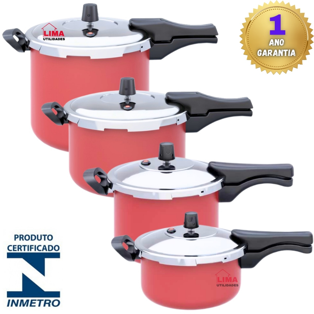 FAQ: Panela De Pressão Vermelha Fechamento Externo 3 - 4,5 - 7 - 10 Litros Selo Inmetro Garantia 1 Ano
