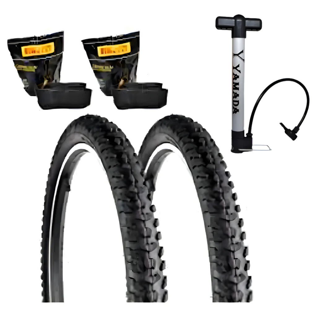 Kit Par Pneu Levorin Excess Aro 26x1.95 + 2 Câmara 26 Pirelli + Bomba Yamada Bike Bicicleta MTB