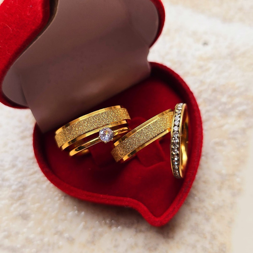 Par de Alianças diamantadas 6mm Banhado a Moeda Antiga + gravação + Aparador + Solitário + caixinha (COD-24)
