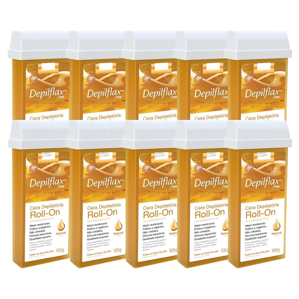 Kit 10 Refil Cera Depilatoria Corporal Profissional Depilação Roll On Depilflax Natural 100g