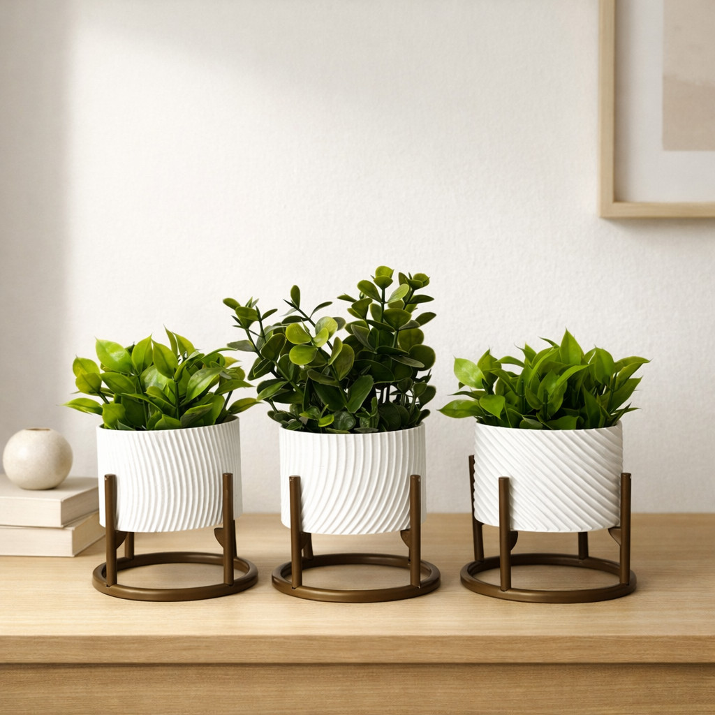 Trio de Vasos Cachepot Minimalista para Suculentas ou Cactos Com Suporte